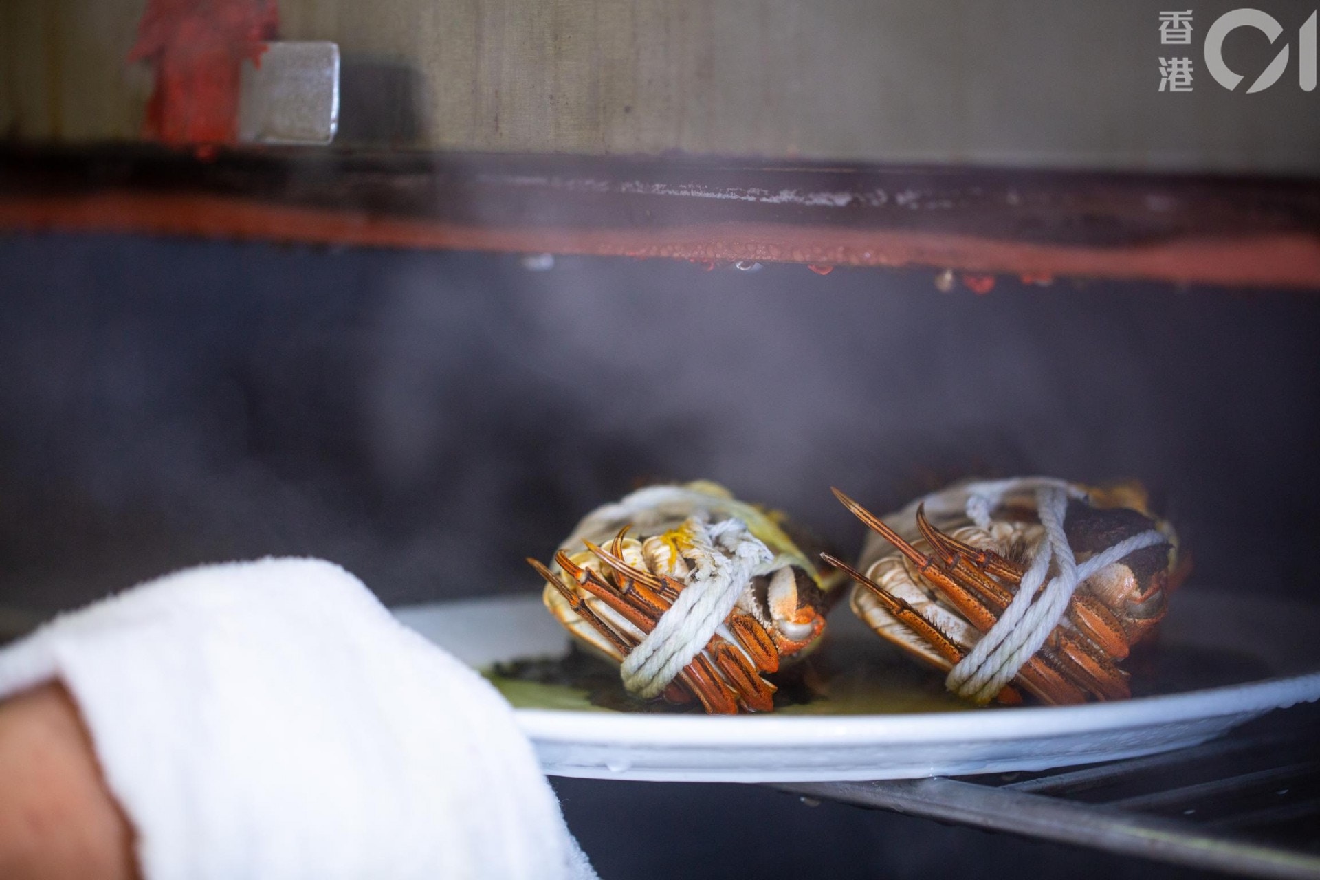 一般人煮大閘蟹,毫無疑問當然是蒸,但早前請教了富嘉閣總廚助理張東正師傅,他示範了另一個做法,時間跟蒸蟹差不多,卻令蟹更香,而且蟹膏及蟹肉都比平時格外滑嫩。