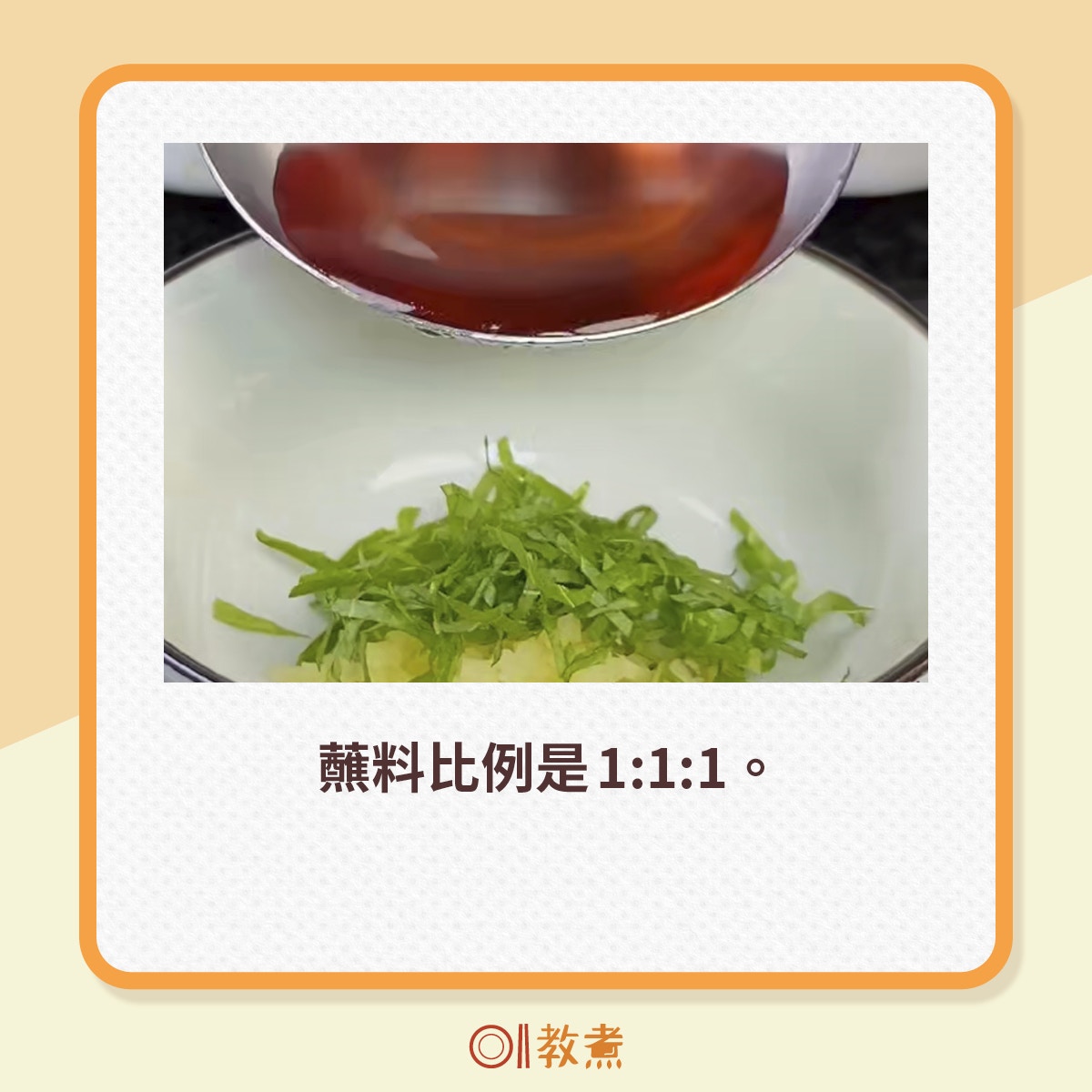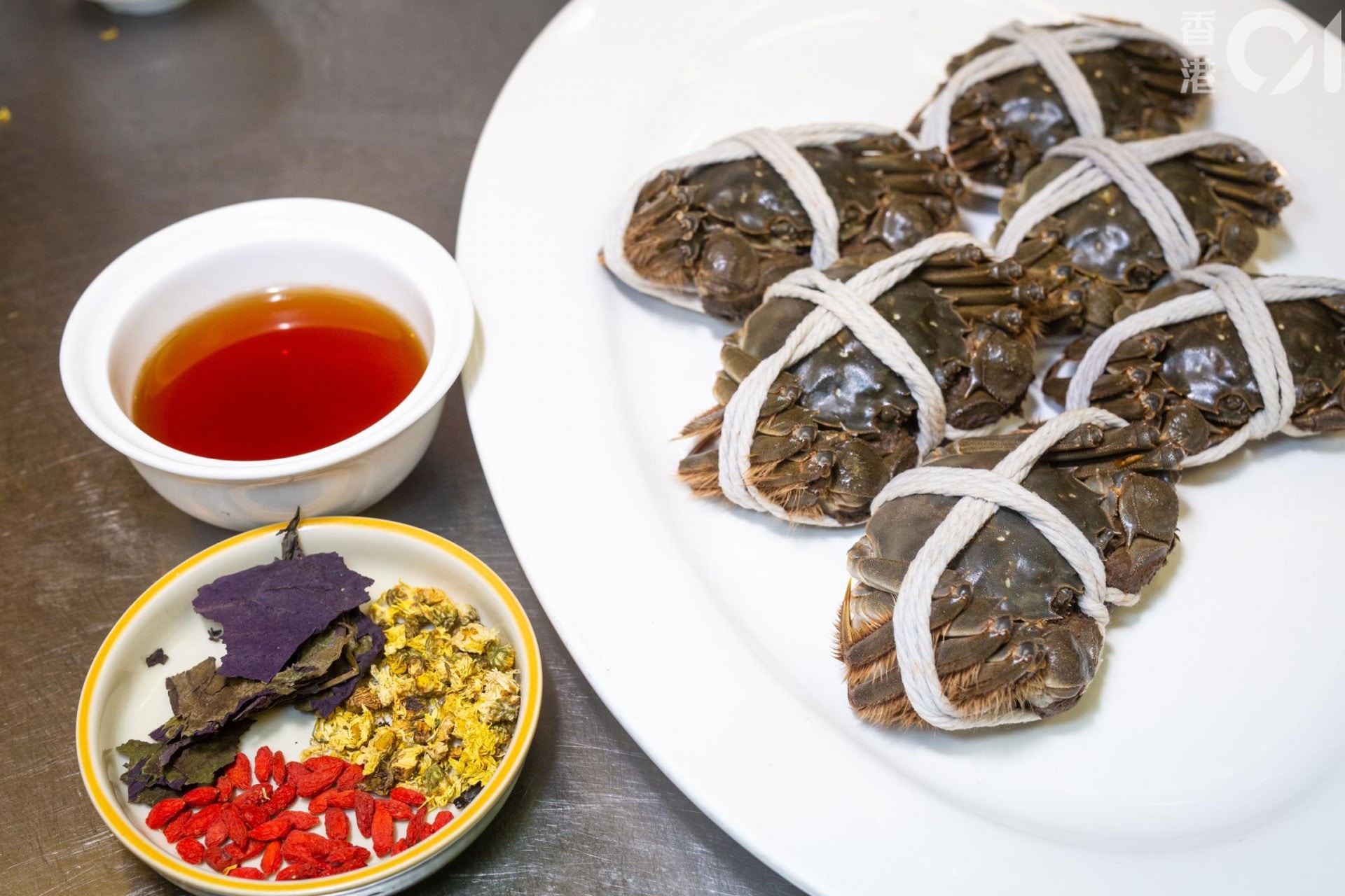 大閘蟹配蟹醋風味絕佳,用4種調味料混和便成,比例簡單易記。