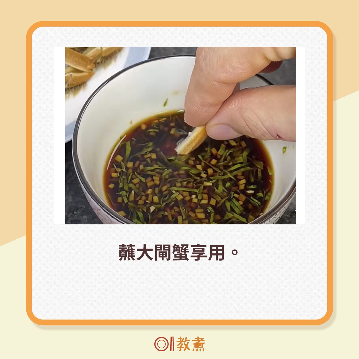 按下圖有大閘蟹蘸汁-蟹醋做法可參考︰