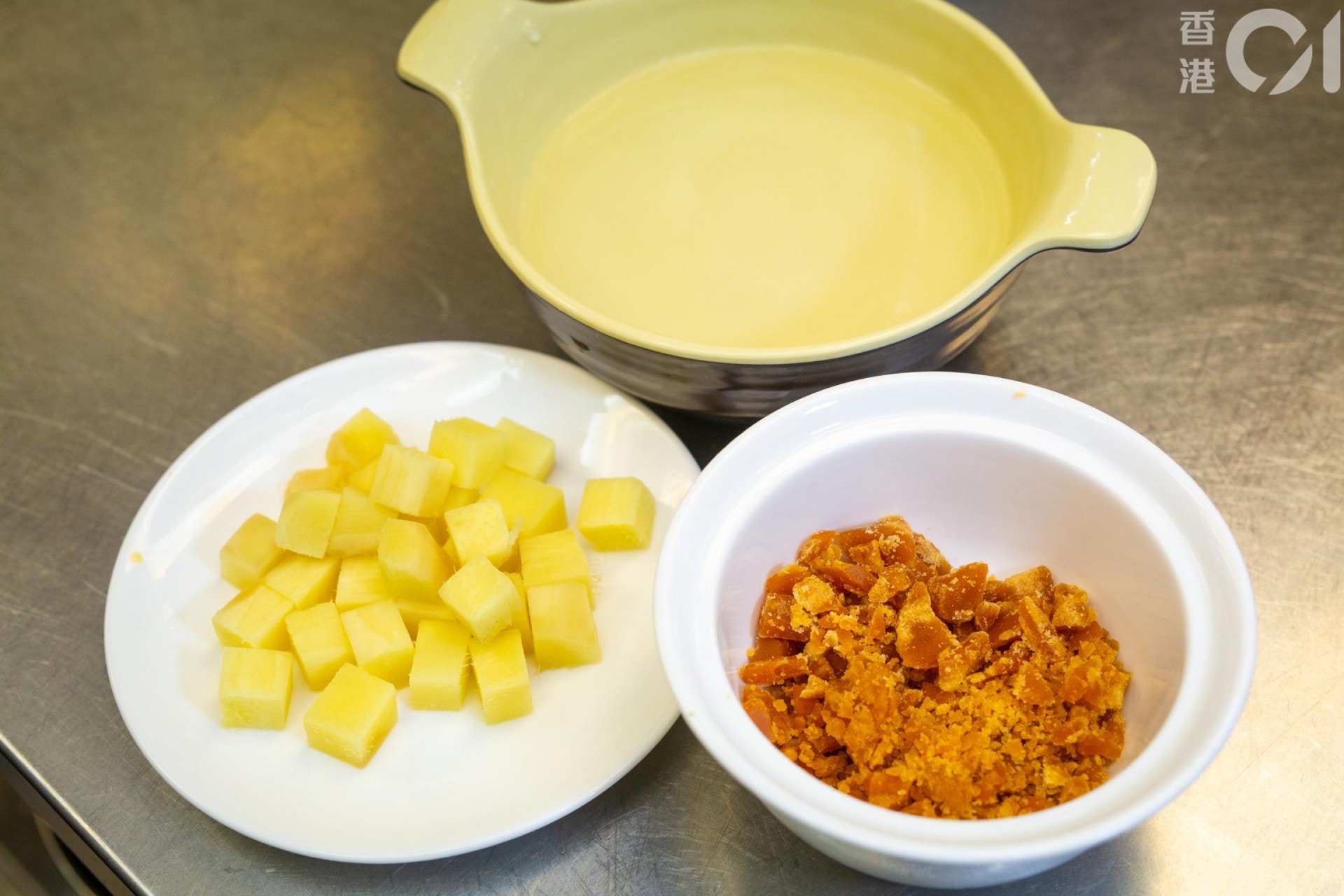 煲薑茶再要有1800毫升水、1片片糖、150至200克薑粒。