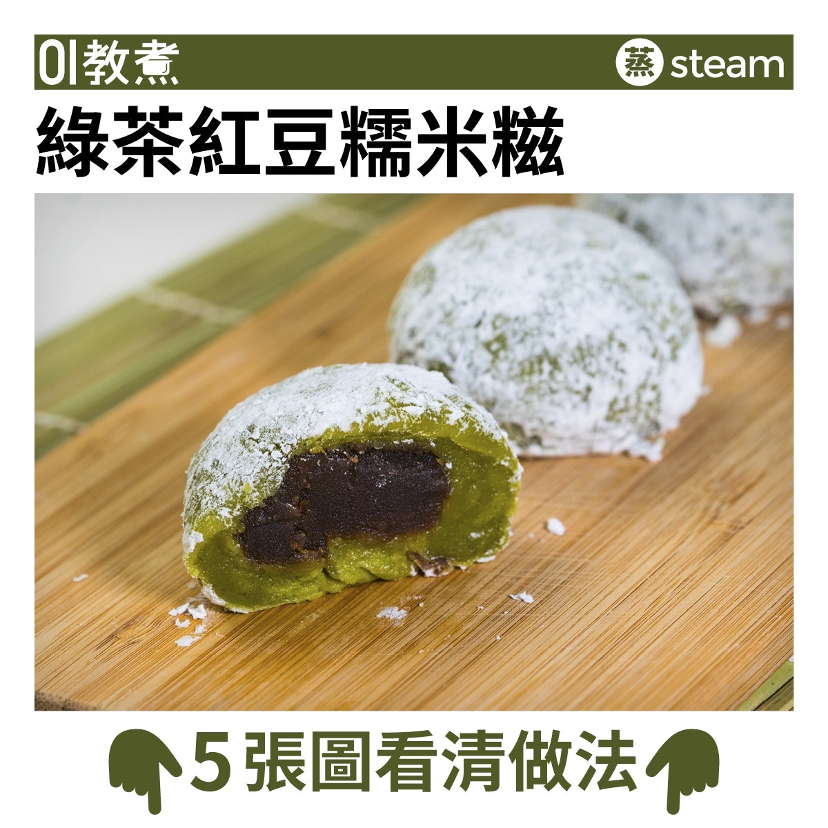 【糯米糍食譜】綠茶紅豆糯米糍軟綿煙韌 綠茶粉別貪多易變苦!