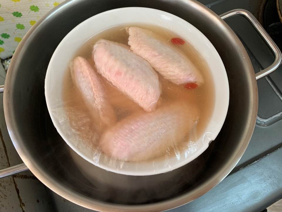 筆者亦嘗試用蒸的方法來烹煮醉雞翼,但需要較長的時間。煲滾水後,以大火隔水蒸20分鐘。