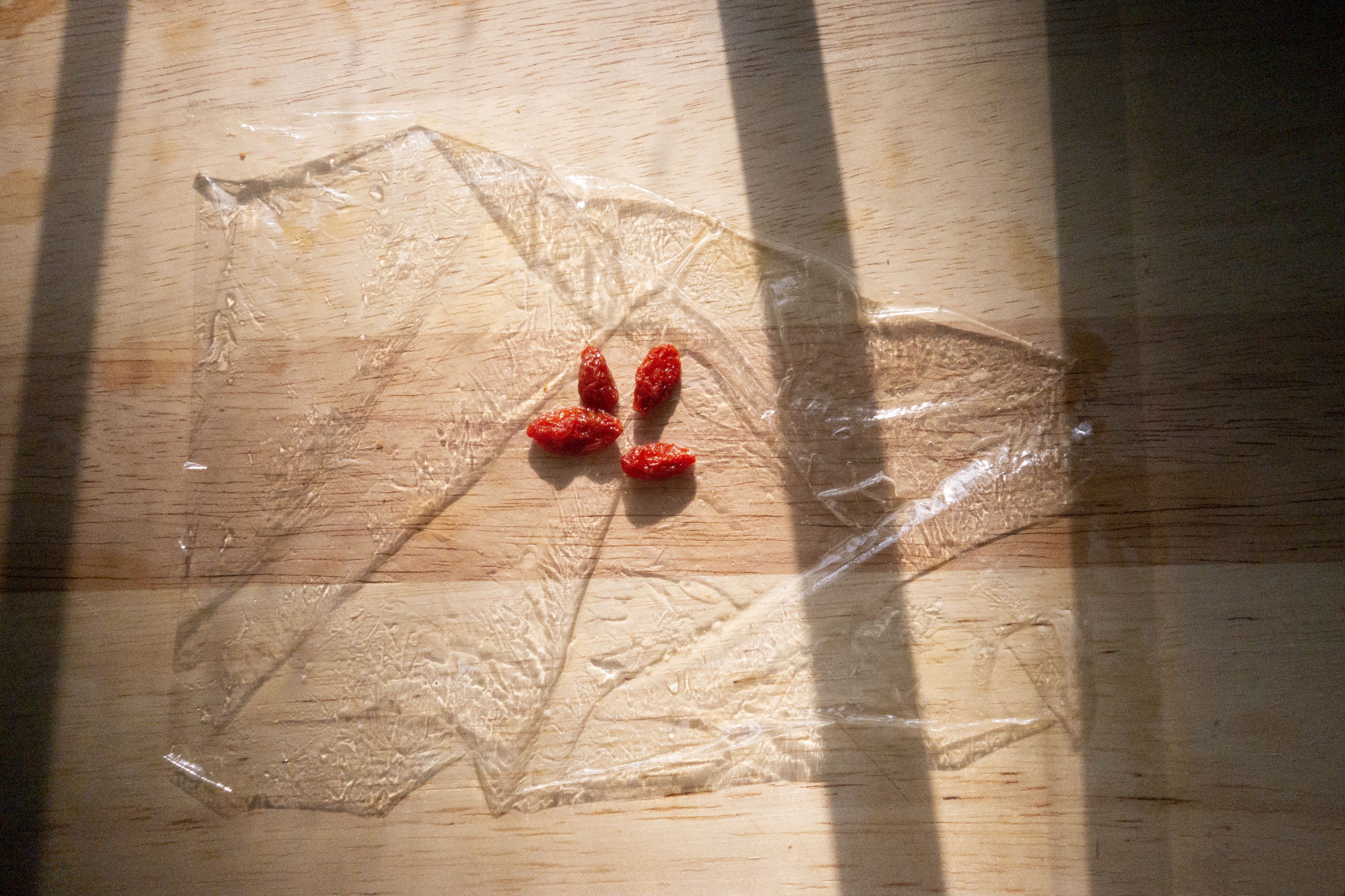 步驟3|將微波爐保鮮紙裁剪成可以包裹雞翼的大小,放入杞子。