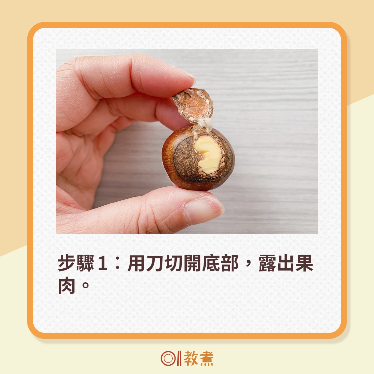 按圖參考快拆栗子的方法及注意地方,毋須「十字刀」︰