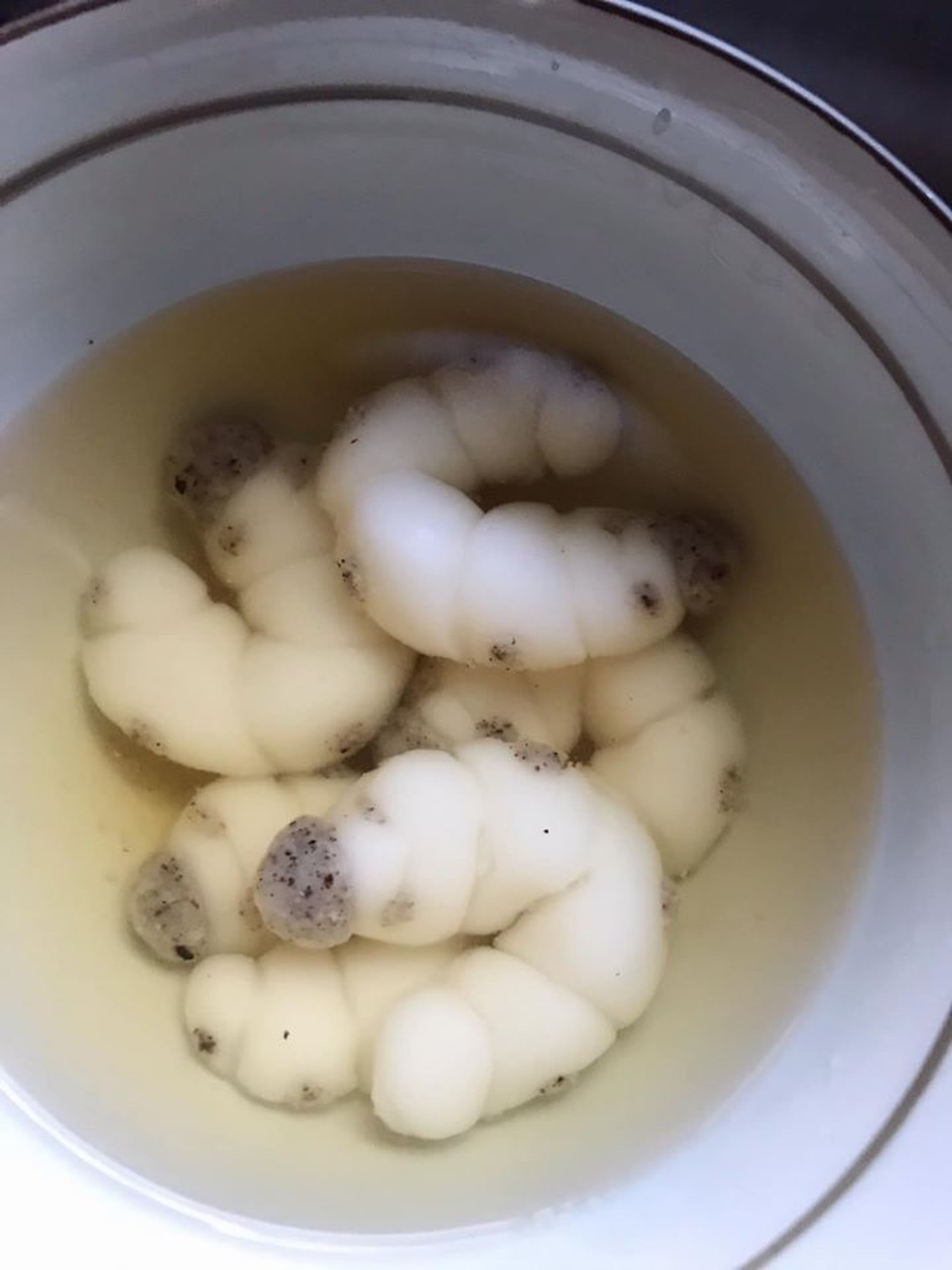 【暗黑料理】撈起布甸狗時,整個外貌又紅又皺,慘遭酷刑對待一樣。(narok___Twitter圖片)