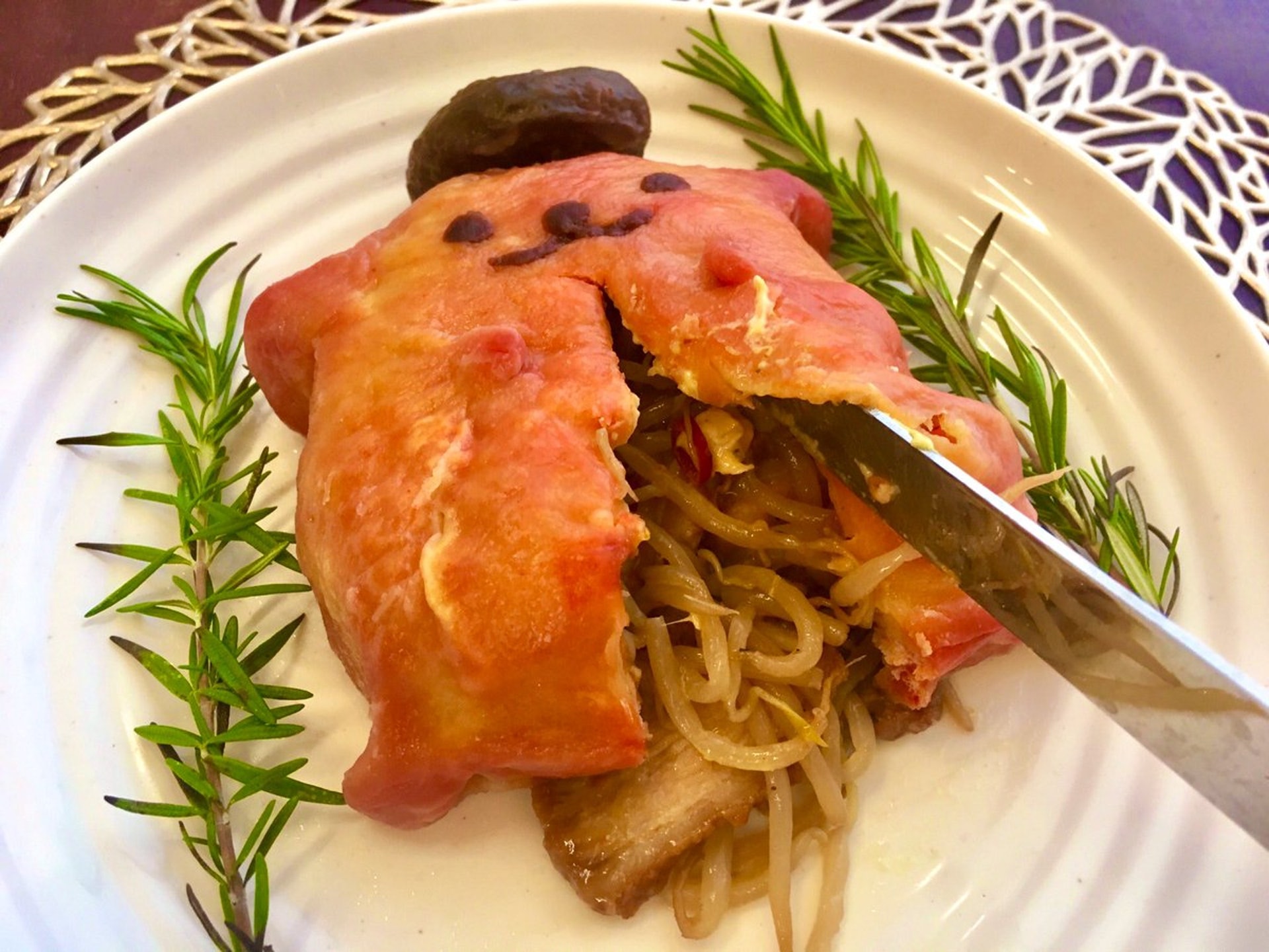【暗黑料理】樓主還切開布甸狗的肚子,讓大家看看內餡,看起來像腸臟流出。(narok___Twitter圖片)