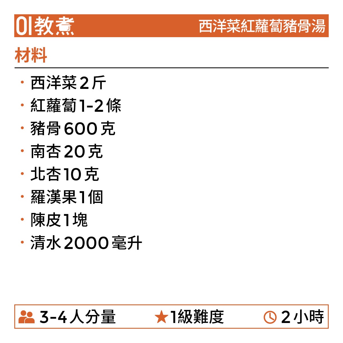 西洋菜紅蘿蔔豬骨湯食譜
