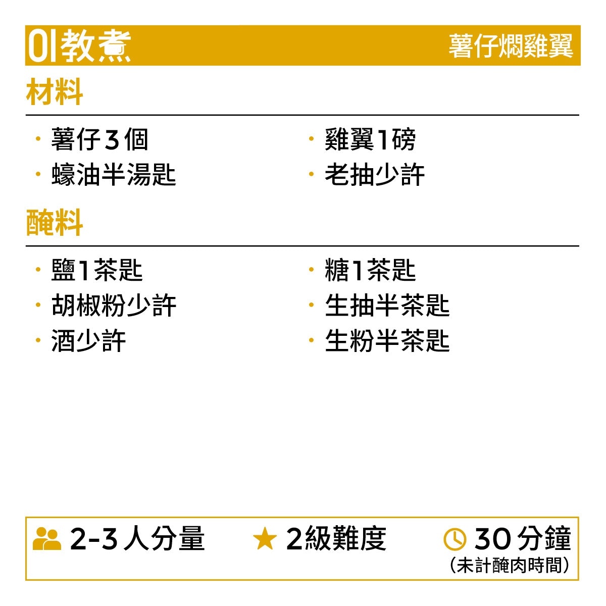 薯仔燜雞翼食譜