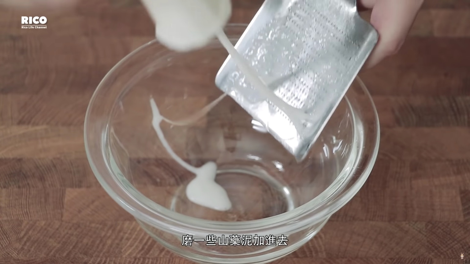 磨些淮山蓉(山藥泥)。(影片截圖:RICO)