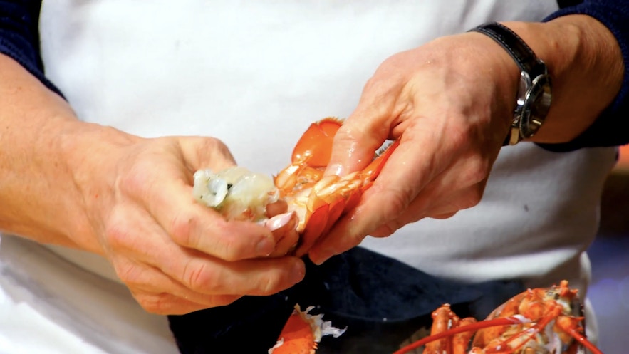 第四步:龍蝦身起肉|將蜷曲的身體稍為拉直。(影片截圖:MasterChef On FOX)