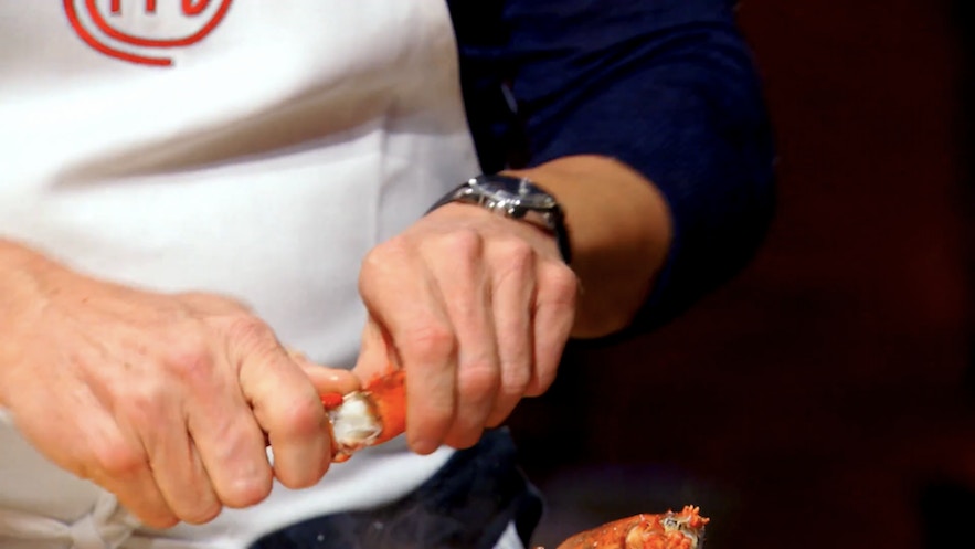 第三步:折斷箝|可以先折斷它的箝,以及是相連的關節位。(影片截圖:MasterChef On FOX)