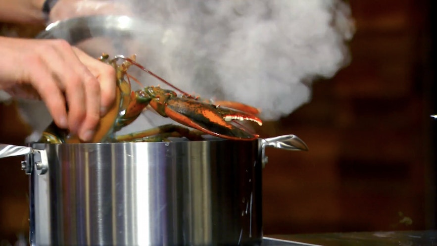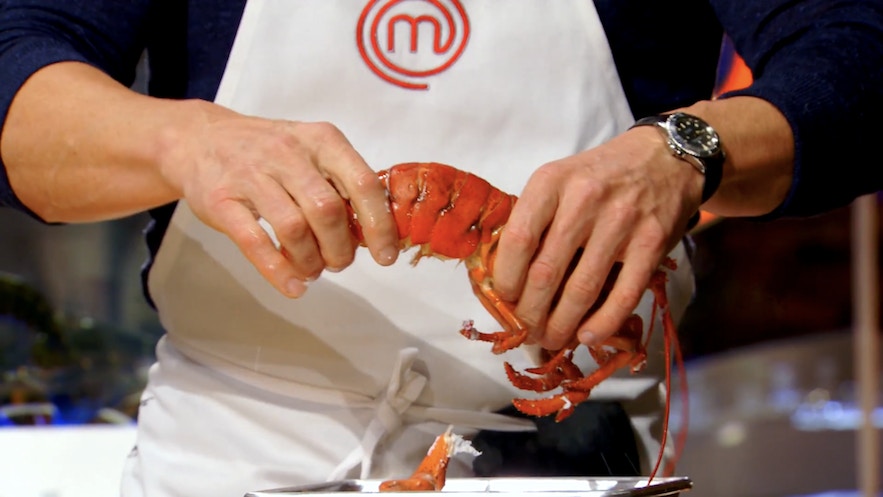 這一步目的不是要將龍蝦煮至全熟,而是要讓它的殼和肉分離。(影片截圖:MasterChef On FOX)