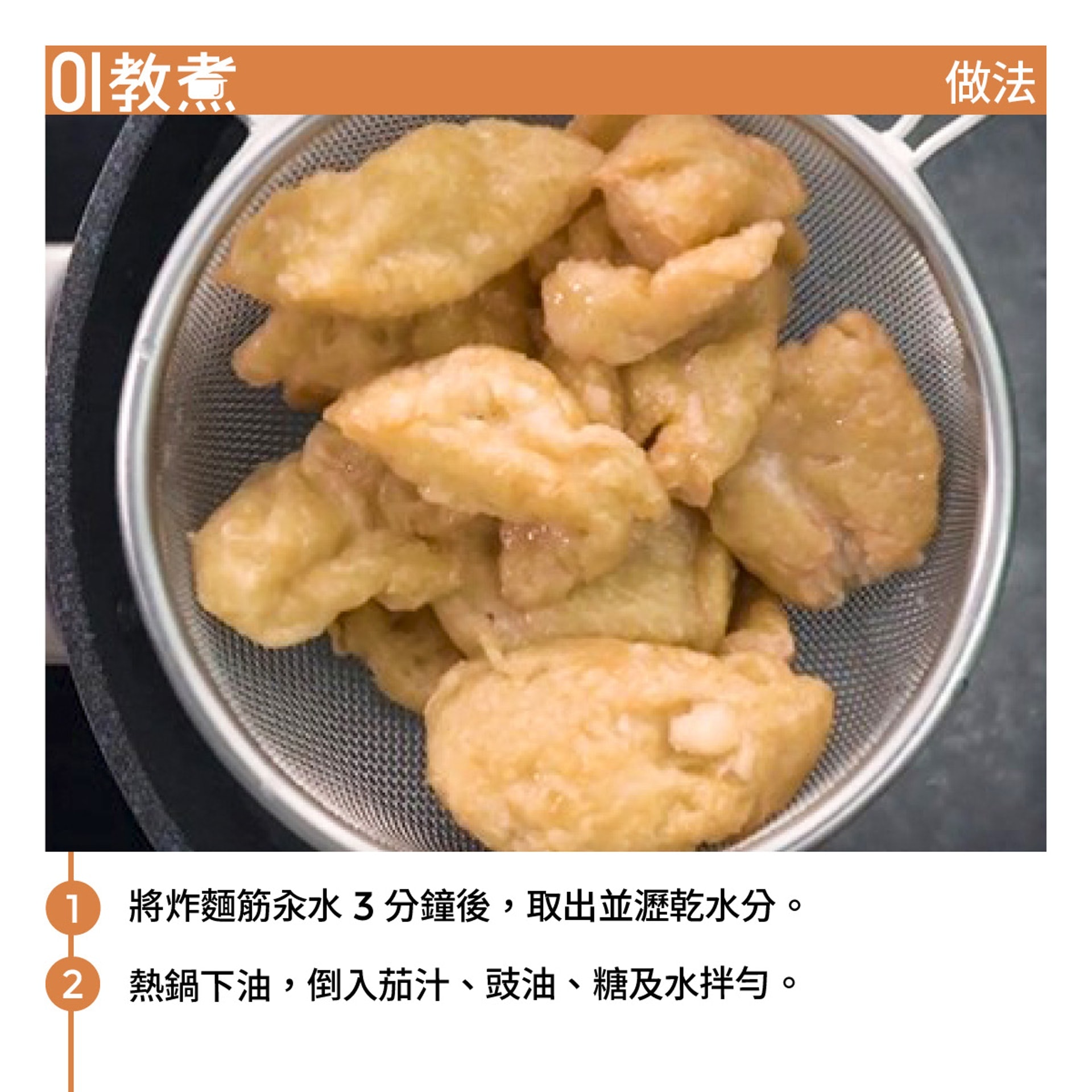 橙紅色的甜酸汁統稱「什錦滷料」,在平凡中其實見心思。基本調味簡單,水、白醋、茄汁、糖,比例1︰2︰2︰3(1杯水、2茶匙白醋、2茶匙茄汁、3茶匙糖)。