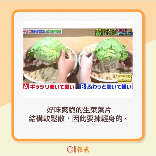 其次如想挑選一個爽、脆、甜的生菜,可以參考日本蔬果業界龍頭代表杉本先生講解,根據「2觀1秤」鑒別出好味的生菜。