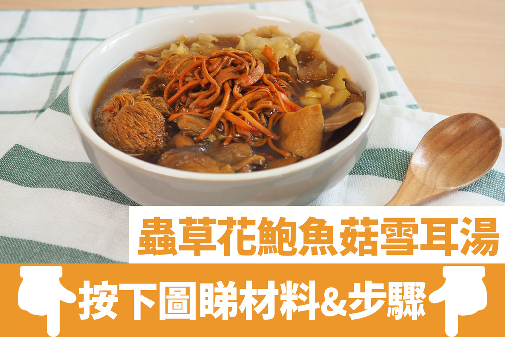 秋冬湯水 1. 蟲草花鮑魚菇雪耳湯