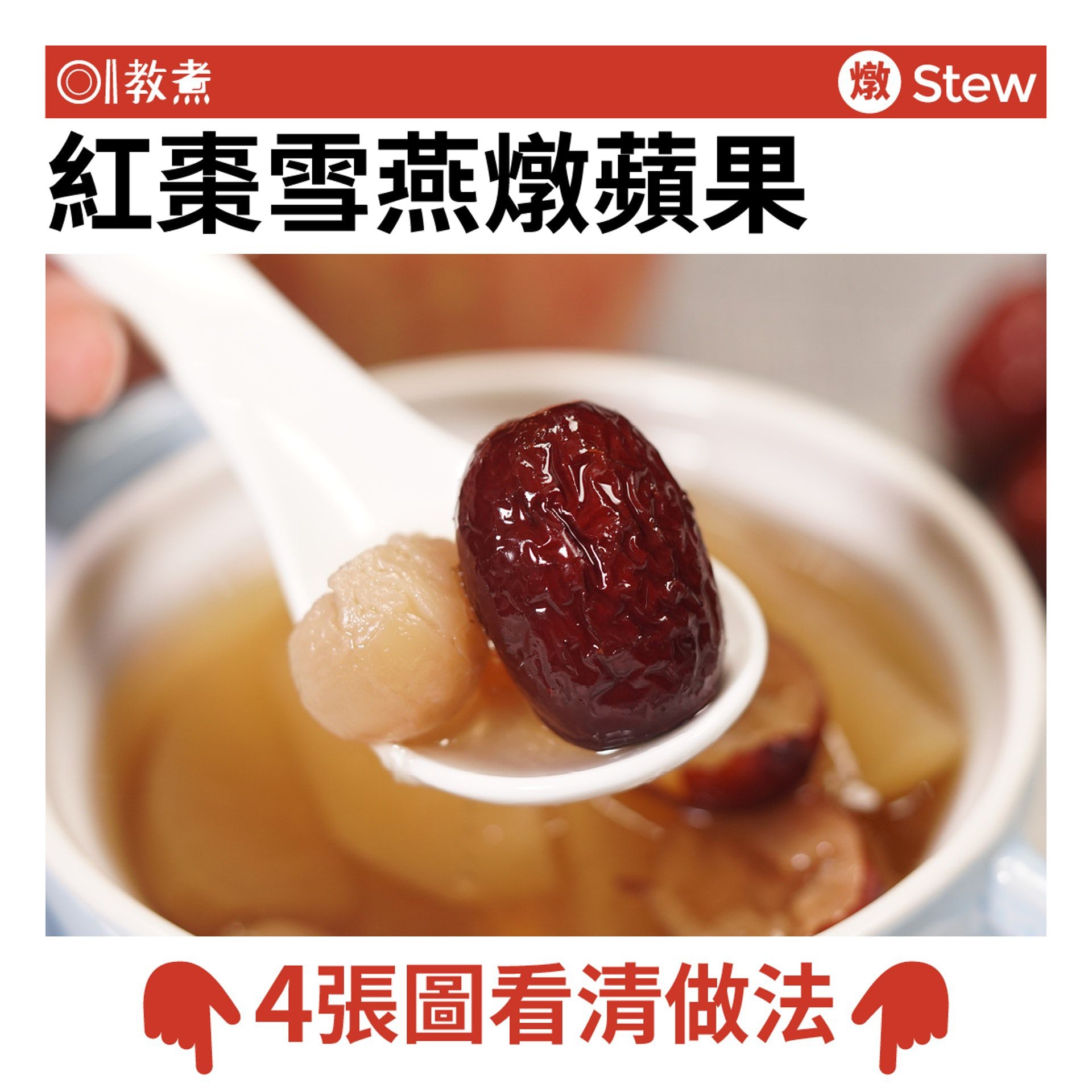蘋果食譜:【中式甜品食譜】紅棗雪燕燉蘋果清甜養顏 冷食熱食一樣滋味滿分