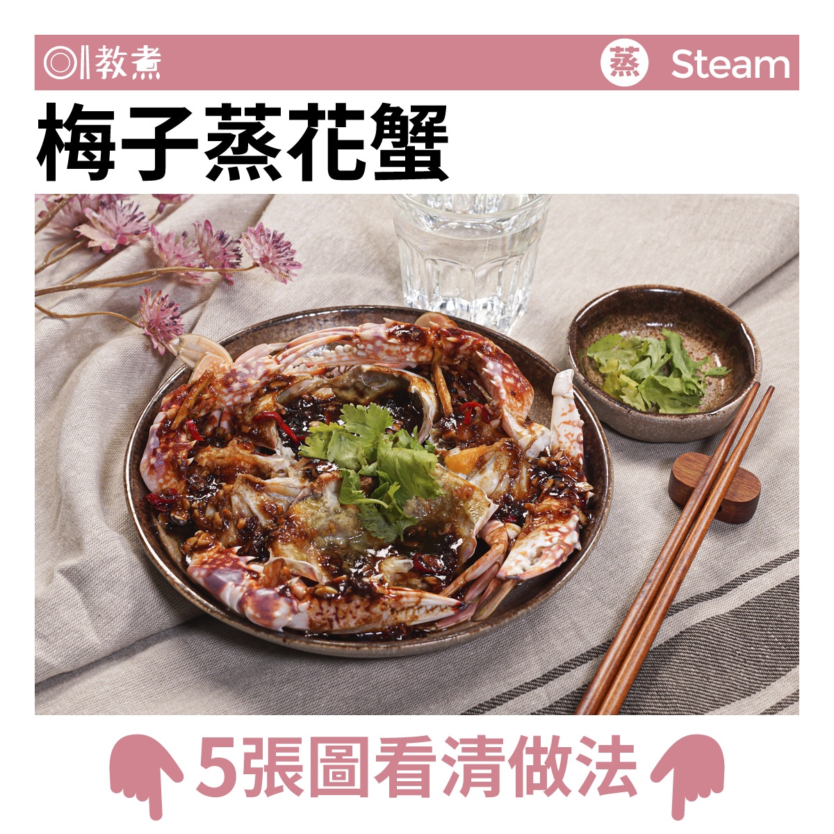 [食譜分享] 轉載 :【冬至三餸一湯】冬菇燜花膠+瑤柱扒豆苗+梅子蒸花蟹+海鮮豆腐羹 |