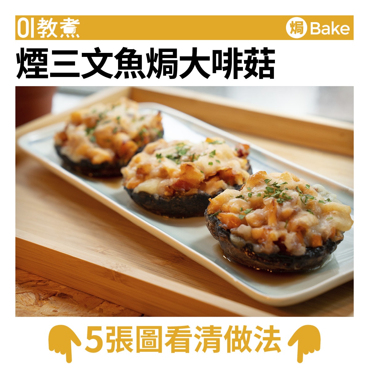 煙三文魚焗大啡菇食譜