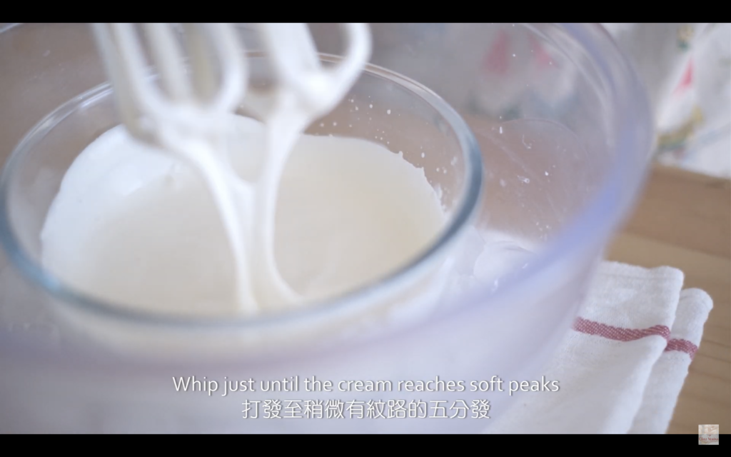 3. 淡忌廉加入17克糖打至5分發