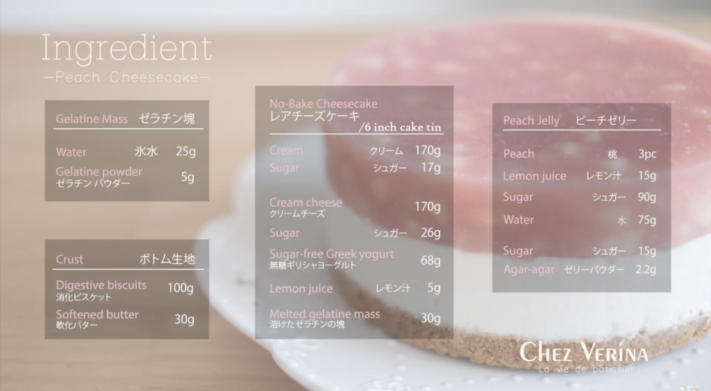 香甜多汁的水蜜桃,配上清爽而入口即融的生乳酪。利用新鮮水蜜桃的天然顏色,做成夢幻又美味的啫喱,整完還可以打卡呢!