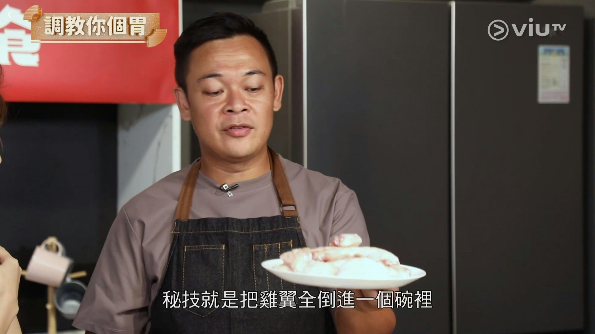 他說:「在裡面𠝹兩刀,基本上雞翼就會很快熟,因為它的肉已全部外露。(ViuTV《今晚趁熱食》節目截圖)