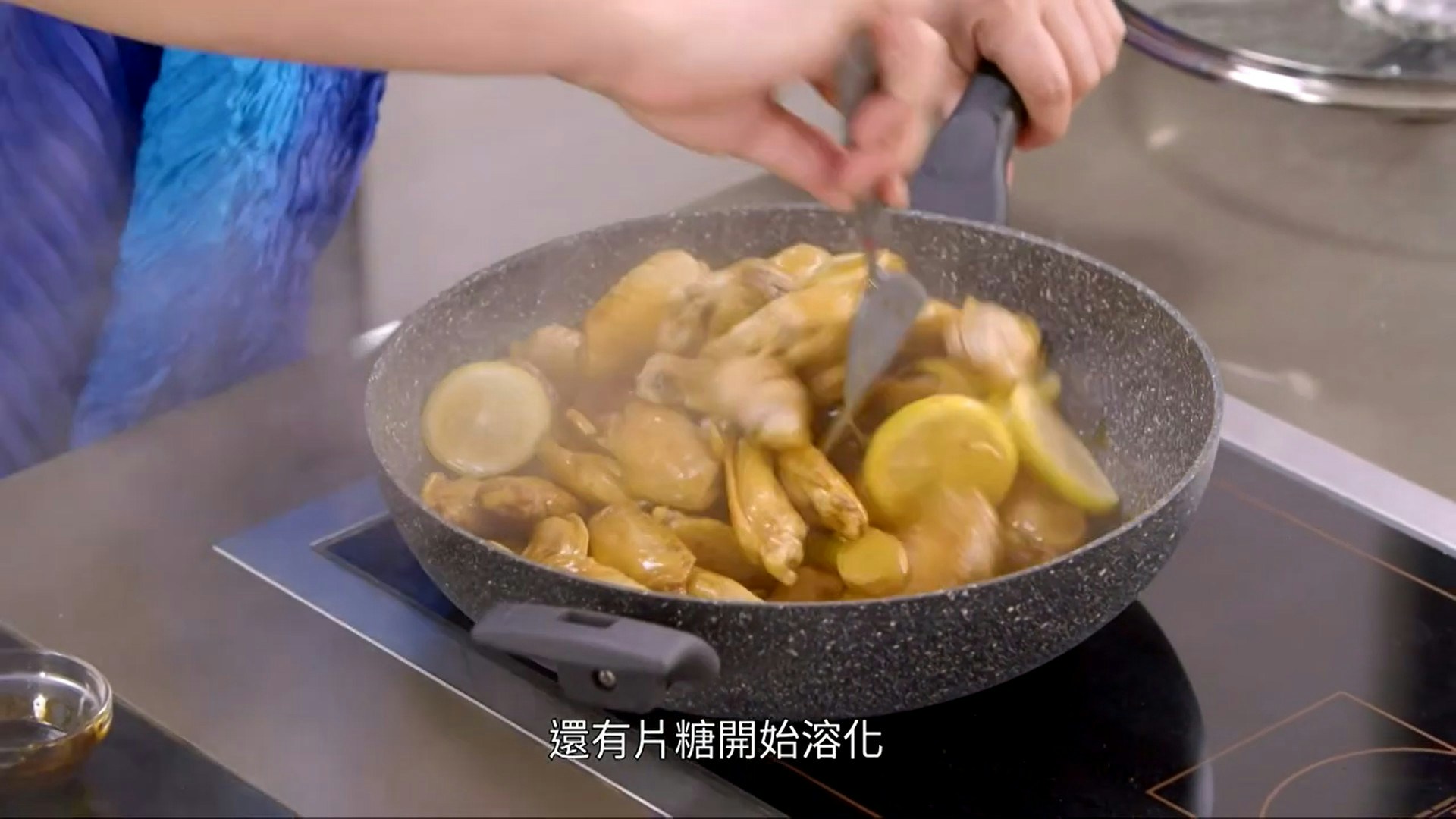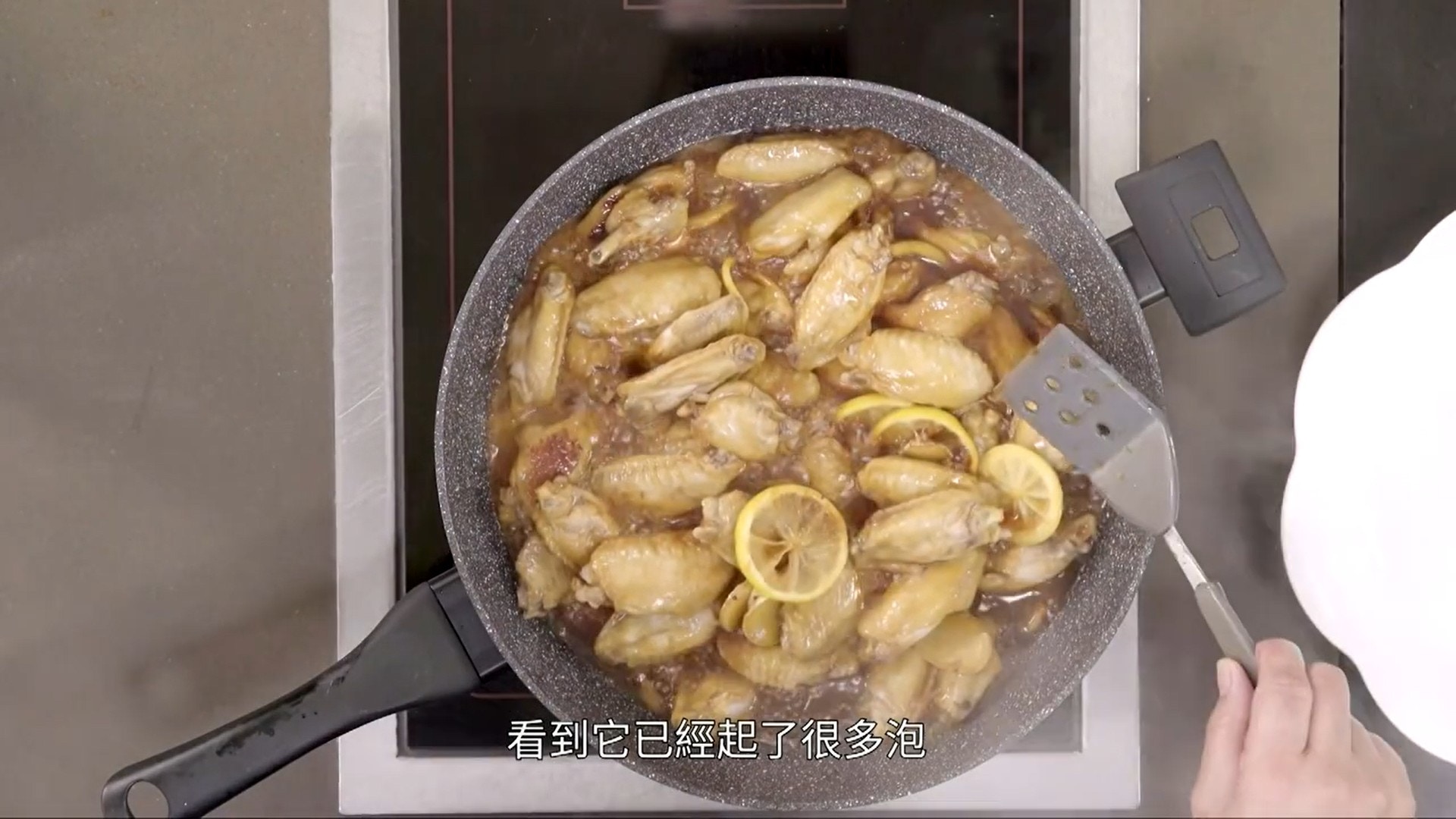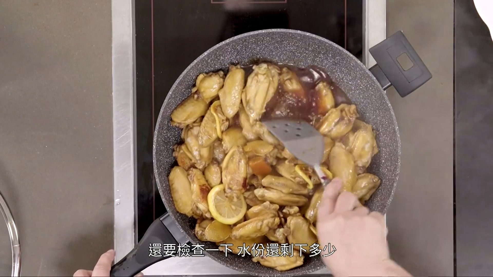明顯地,即使沒有加水,並且用大火燜,檸檬雞翼還是愈煮愈多水。(影片截圖:《Gi味俱全》)