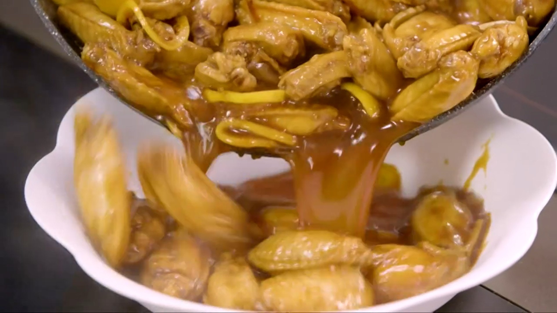 若嫌雞翼色水不夠,可在此時把剩餘的老抽加進去。(影片截圖:《Gi味俱全》)