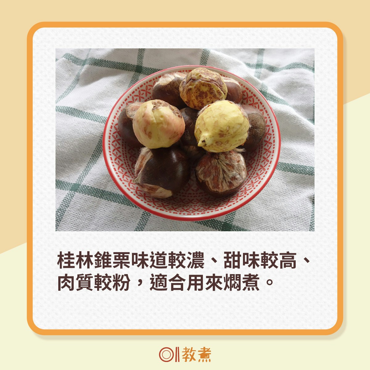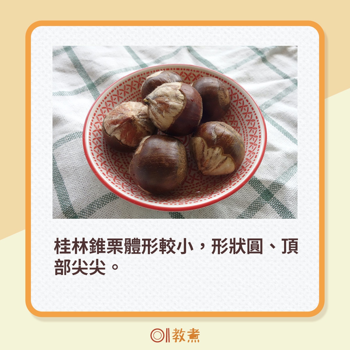 按圖看板栗及桂林錐栗的分別、適合的烹調方法及揀選靚栗子2大方法: