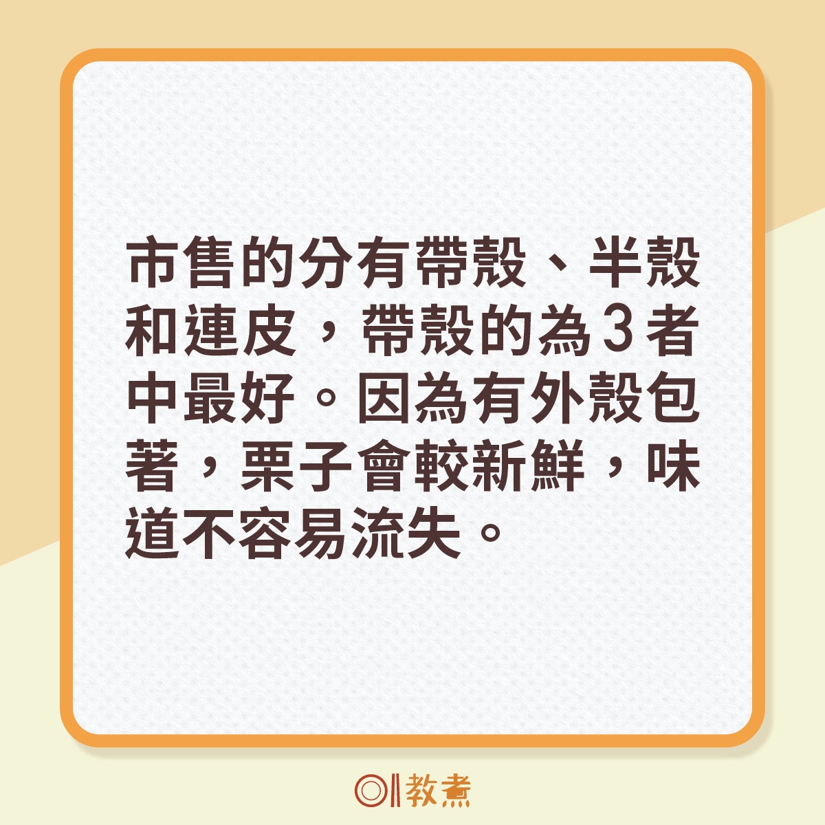 糖炒栗子、栗子粥、栗子燜排骨....栗子的吃法多變,而且具有益氣健脾、厚補胃腸的作用,在秋冬的當造期更是入饌好時機。不少人愛吃栗子是因為其帶著獨特的香氣與甜味,烹煮過後特別香甜鬆軟,如果想提升其甜度也有一個簡單方法。