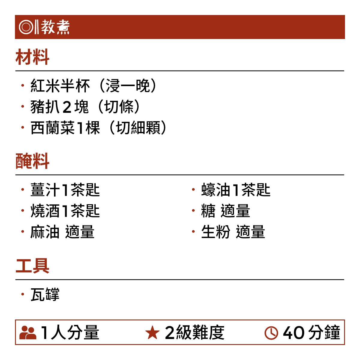 紅米豬扒瓦罉煲仔飯食譜