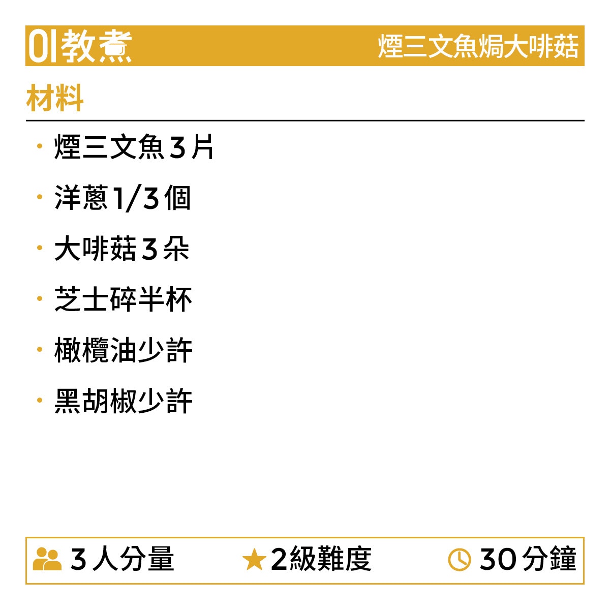 煙三文魚焗大啡菇食譜