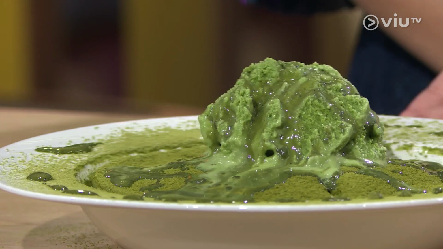 像圖中這種家庭裝雪糕也可以,你也可以把雪糕和抹茶粉換成其他口味,如:朱古力雪糕與可可粉等。(ViuTV《晚吹 - 空肚講宵夜》節目截圖)