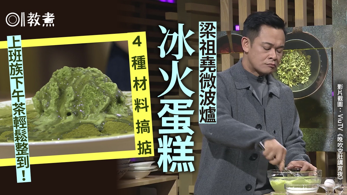 【晚吹空肚講宵夜】梁祖堯微波爐冰火抺茶蛋糕 冷熱交融僅4種材料