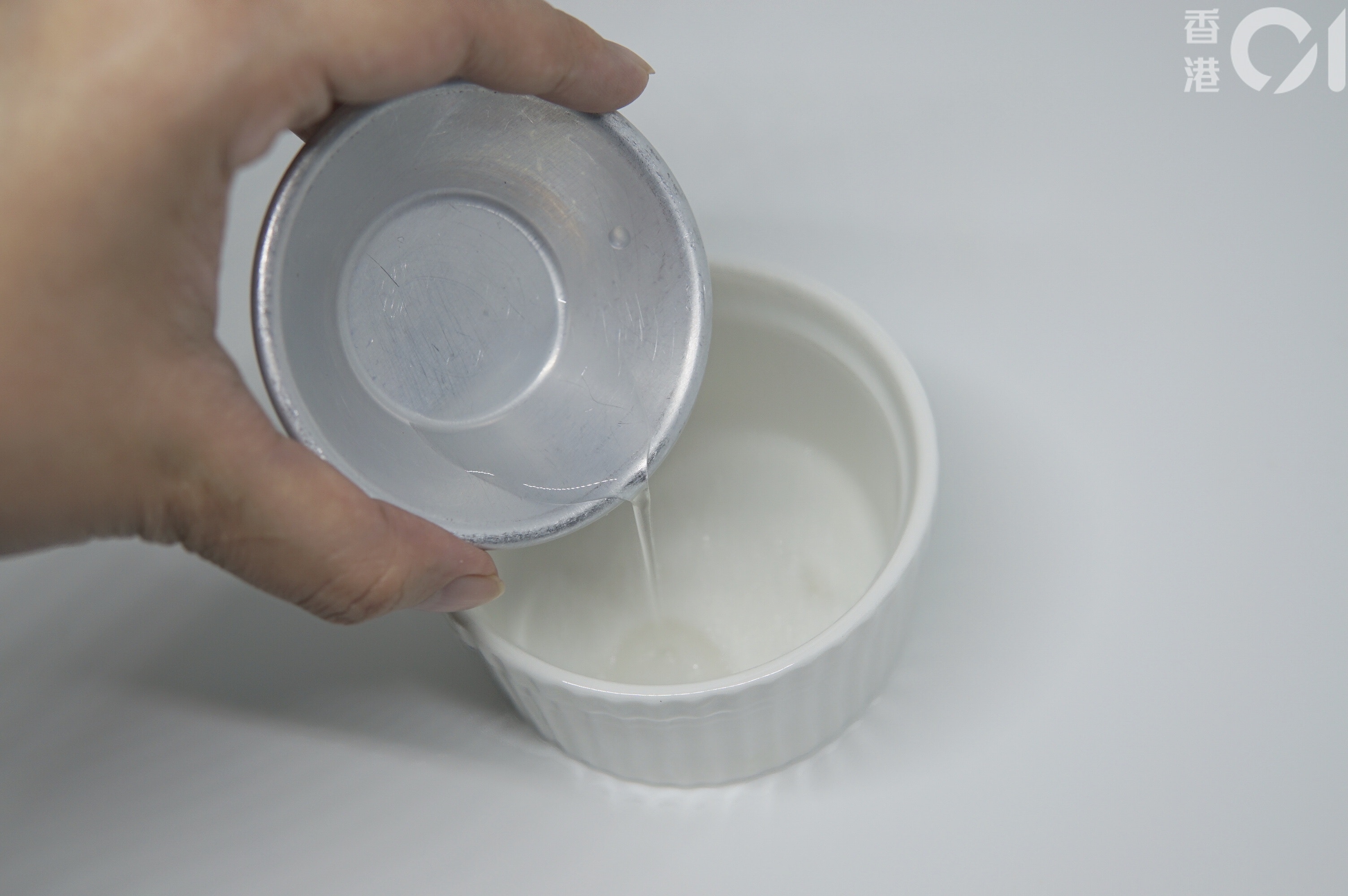 待容器熱透後,可倒走熱水。【小貼士】若沒有此步驟,稍後加熱時,器皿有可能因溫差而裂開。