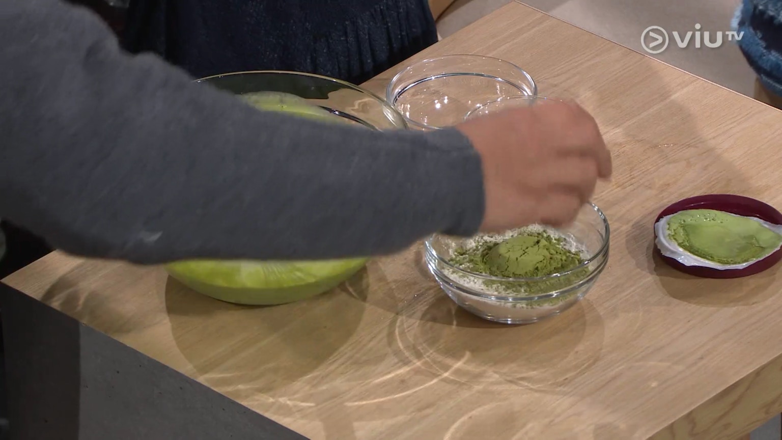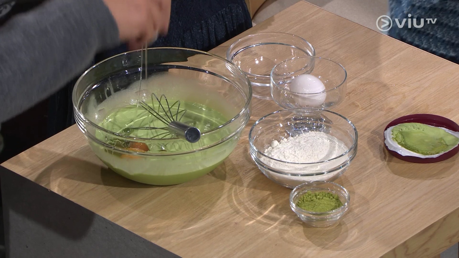 混合抹茶粉與自發粉。(ViuTV《晚吹 - 空肚講宵夜》節目截圖)