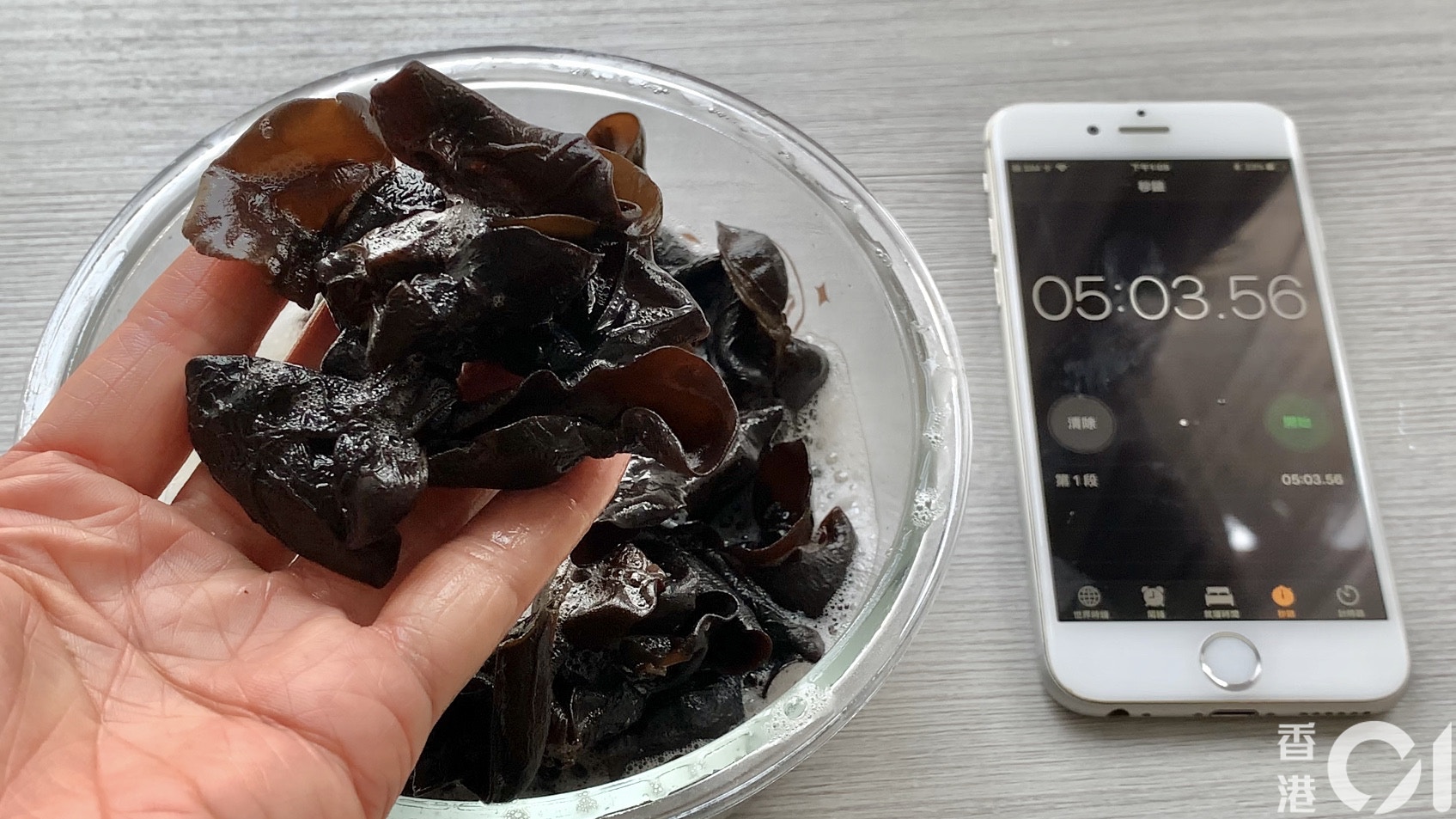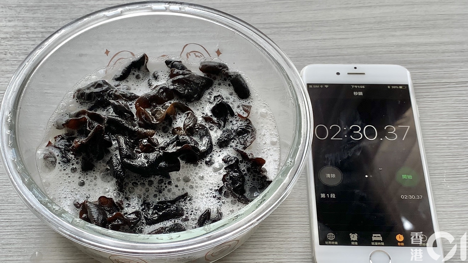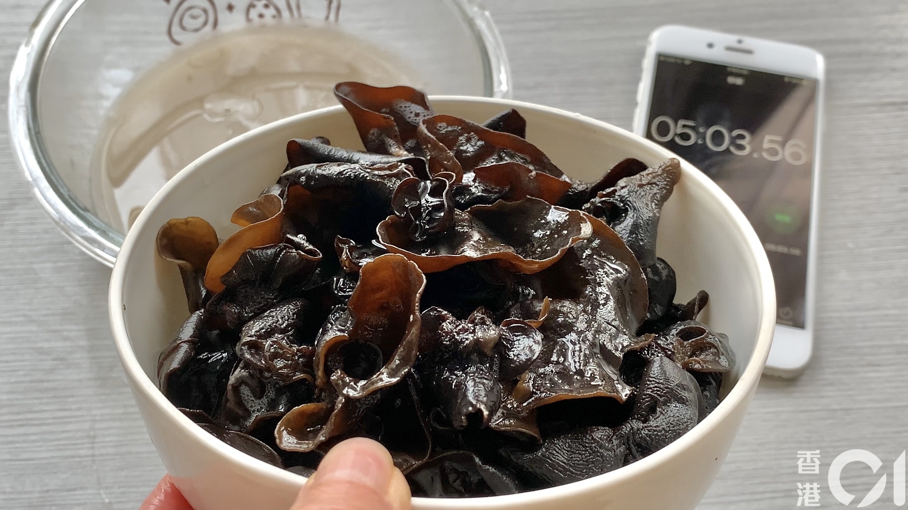 2分30秒後,雲耳基本上已膨脹,但手感未夠柔軟。