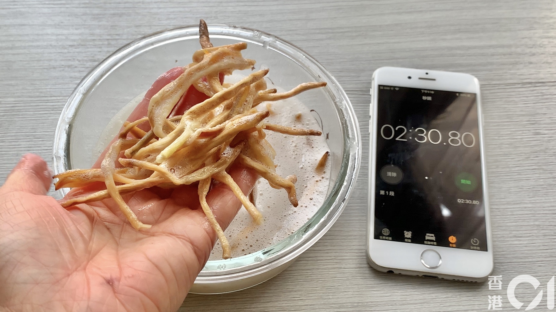 2分30秒後,金針基本上已浸發了。