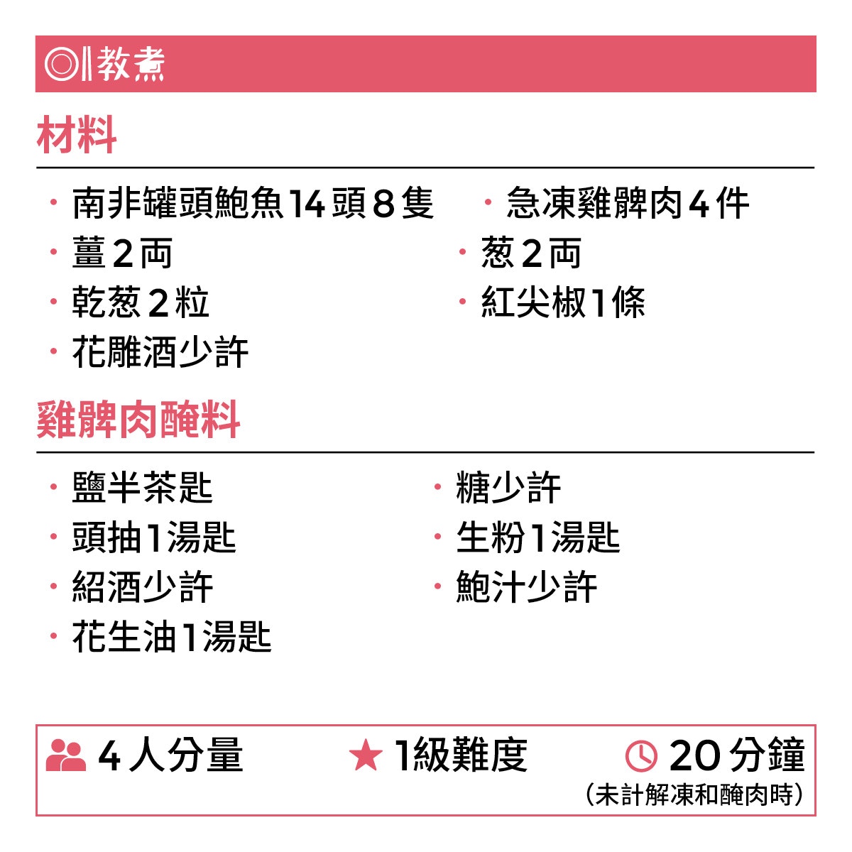鮑魚煎焗雞食譜