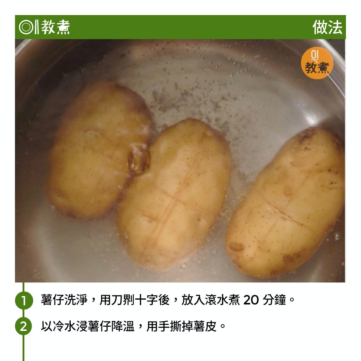 步驟3|薯仔冷水下鍋,以中火煮10分鐘,即成。