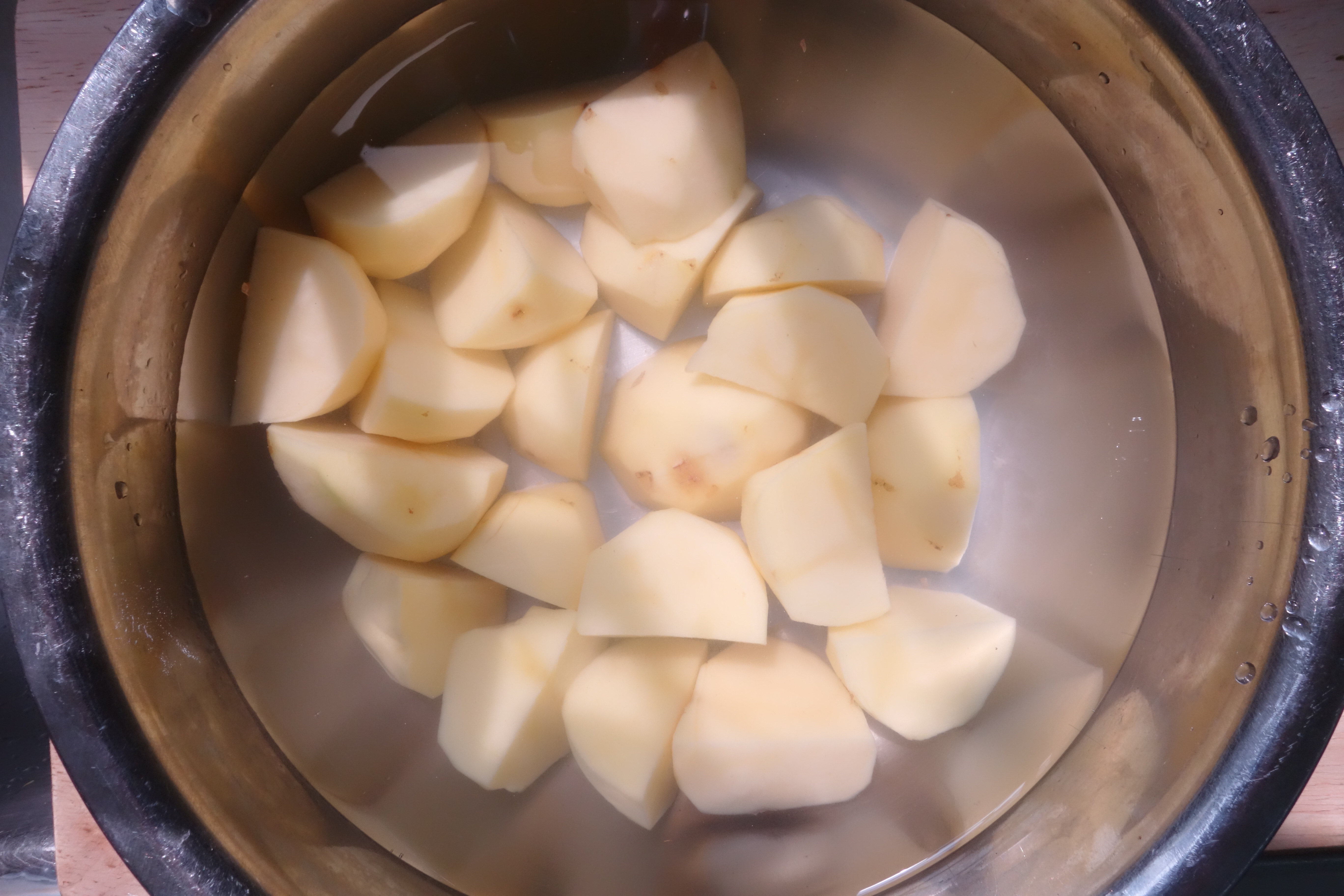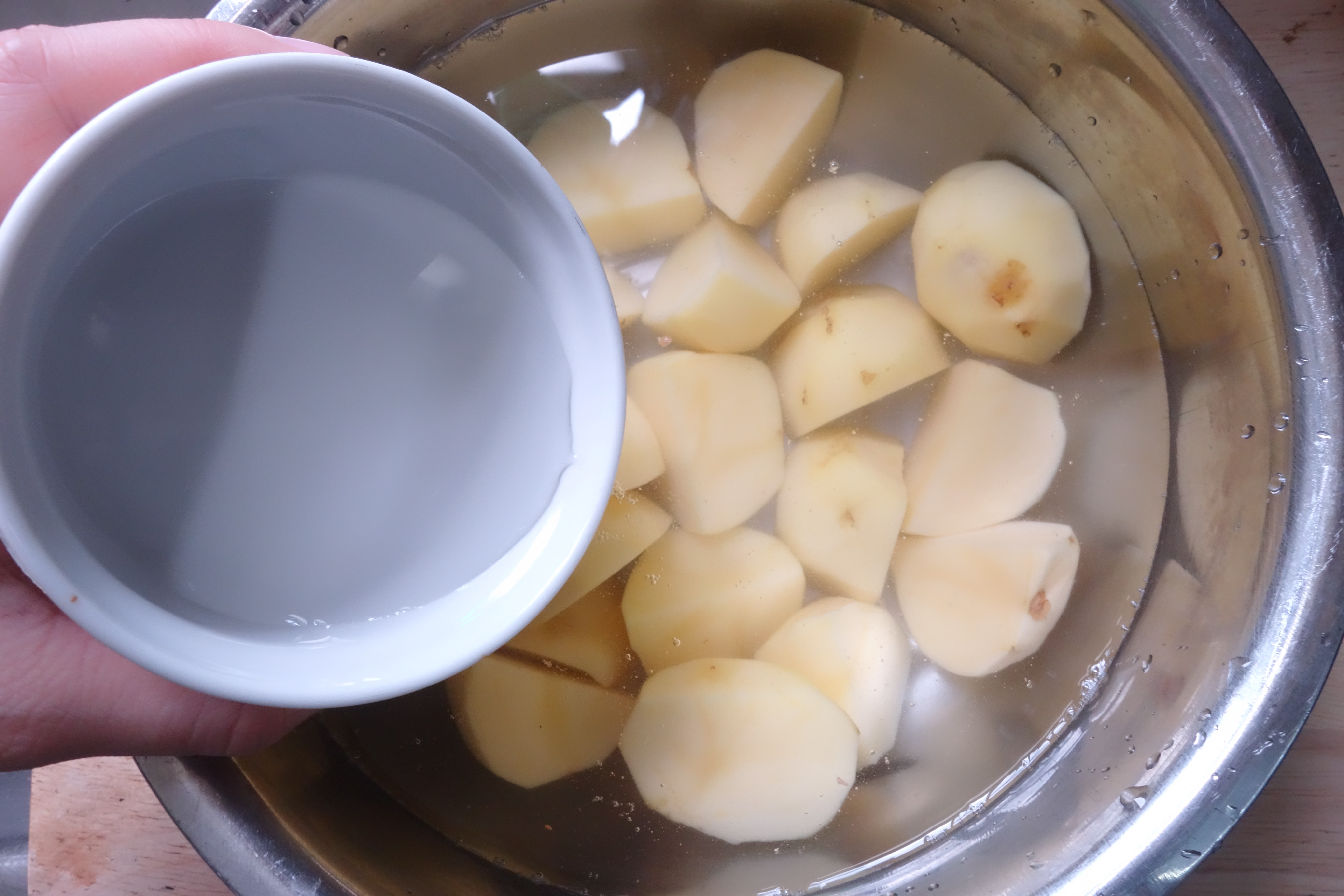 步驟2|加入適量的清水及醋,水的分量要蓋過所有薯仔。