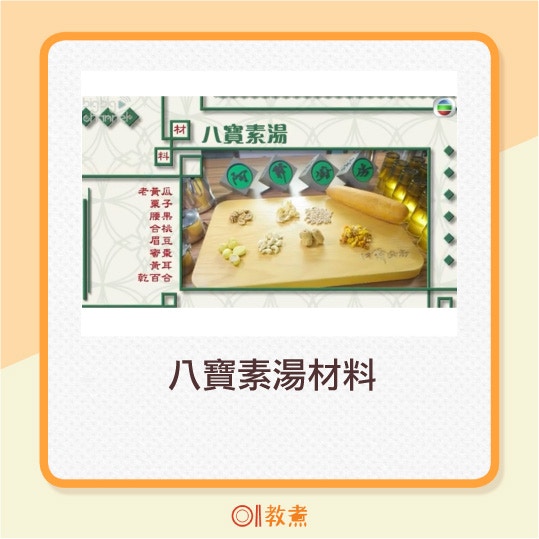 請按下圖看八寶素湯食譜及入廚貼士︰
