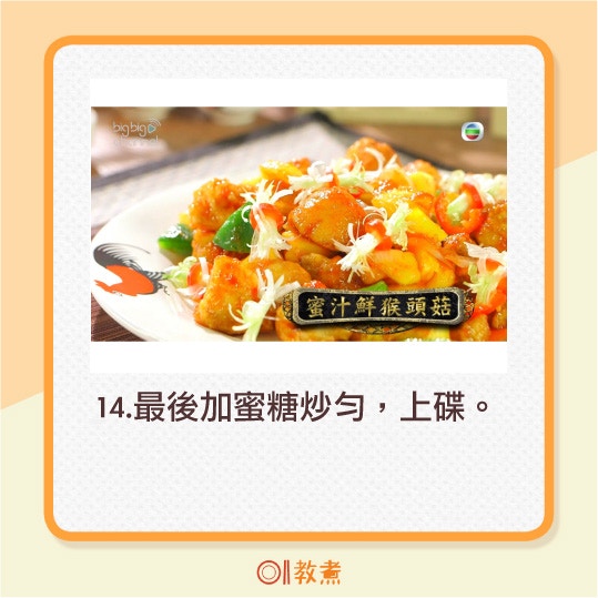 蜜汁鮮猴頭菇做法。(阿爺廚房影片截圖)