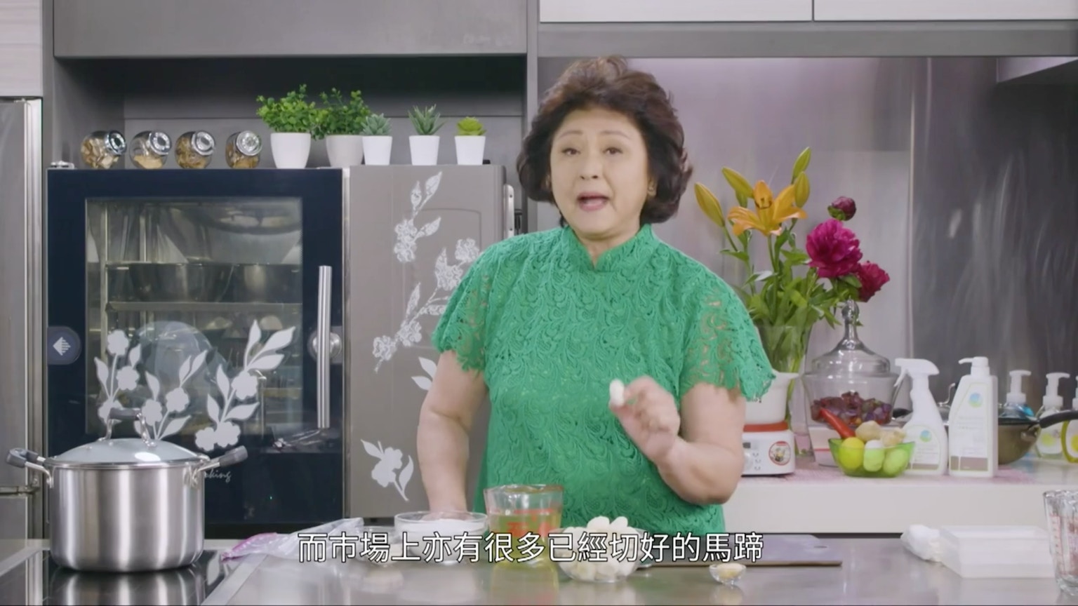 Gigi姐喜歡馬蹄的爽口感覺,因此用上30粒馬蹄,但她強調口味因人而異,若你不喜歡太多馬蹄,減至20粒亦無不可。(節目截圖:《Gi味俱全》)