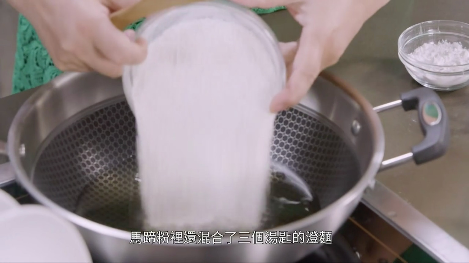 鍋中再加入兩杯馬蹄粉,以及3湯匙澄麵。(節目截圖:《Gi味俱全》)