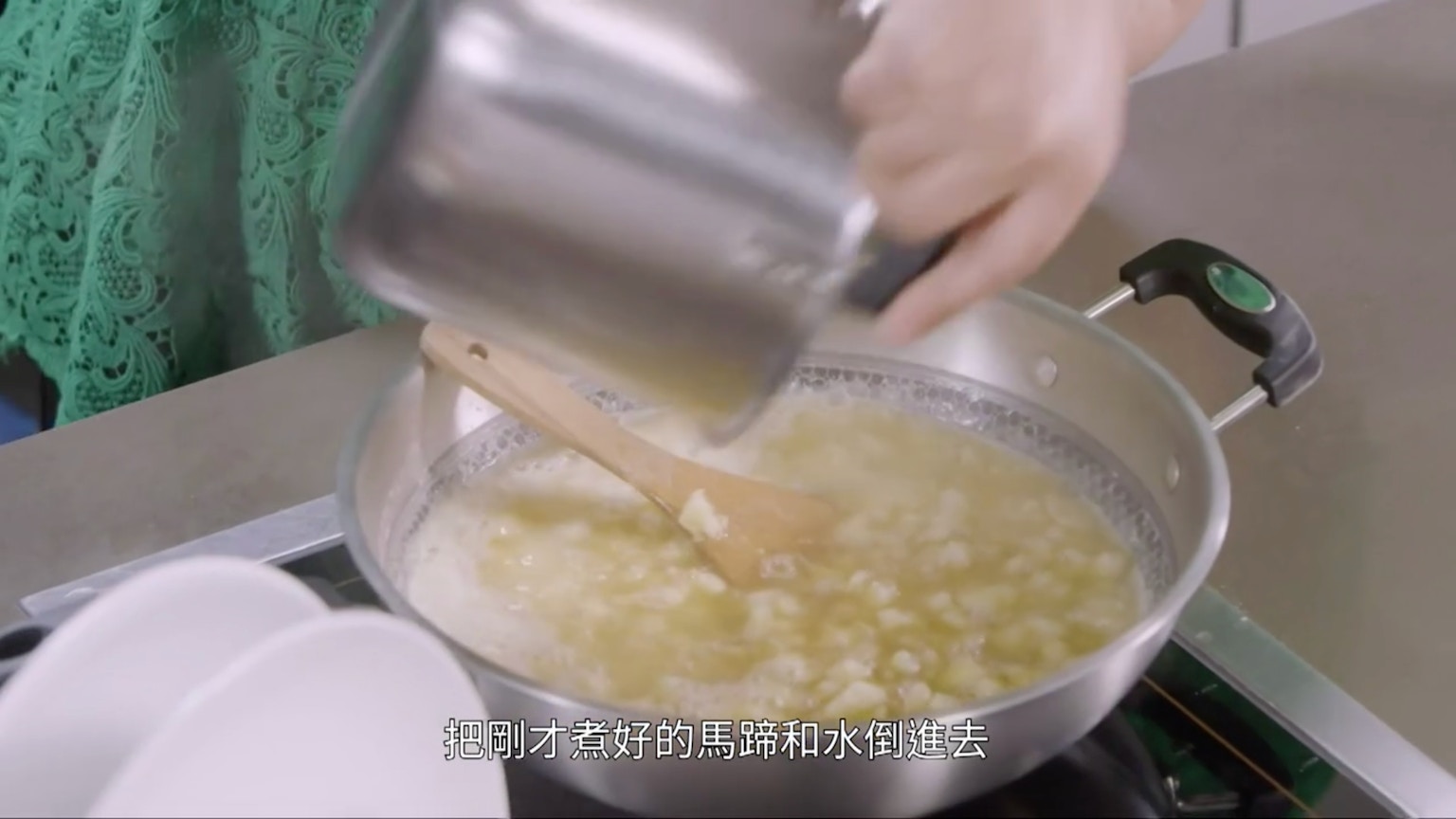 煮粉糊其間,可把煮好的馬蹄糖水也倒進去。(節目截圖:《Gi味俱全》)