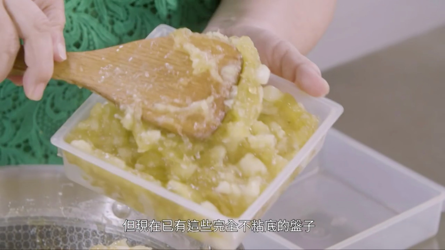 可採用坊間有些以不黏底物料製成又能入蒸鍋的盤子。【小貼士】假若你家裡只有不銹鋼或鋁質容器亦可,但入模前記得要先掃層油,方便之後脫模。(節目截圖:《Gi味俱全》)