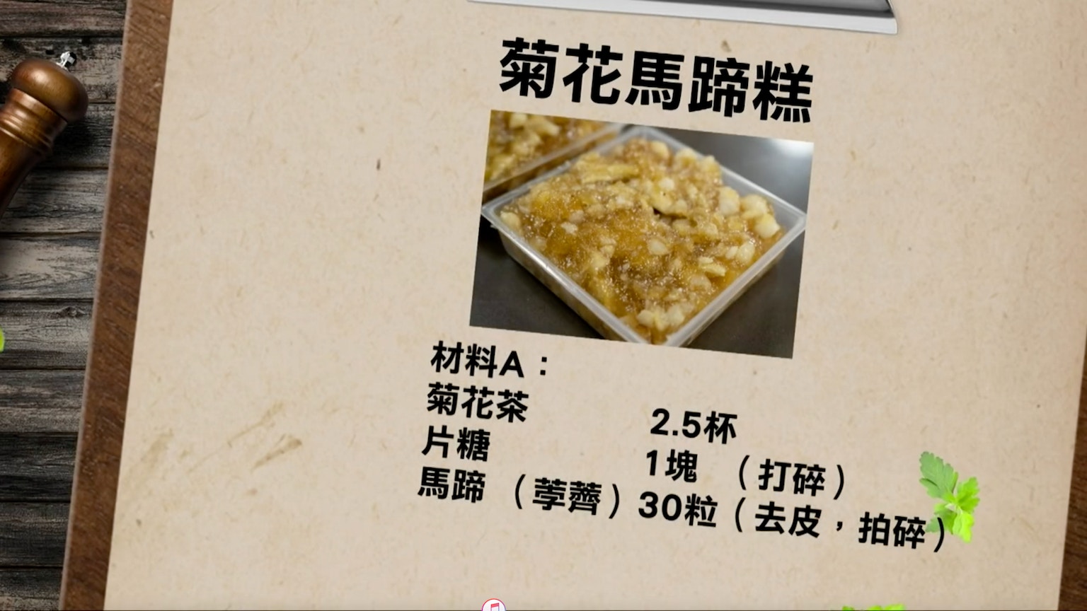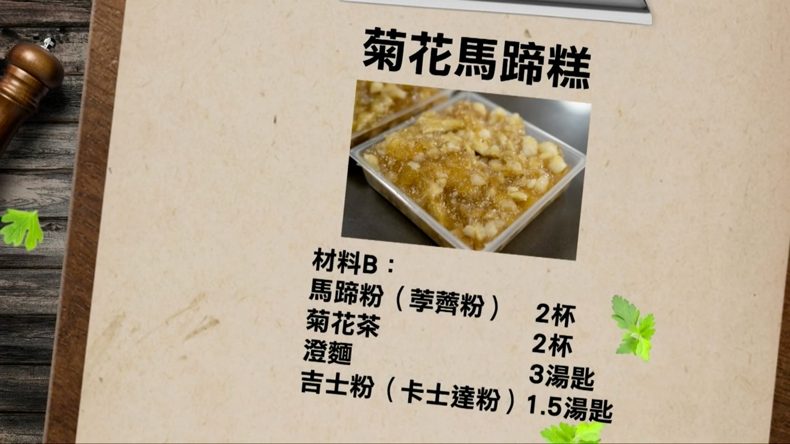 菊花馬蹄糕所需材料。(節目截圖:《Gi味俱全》)