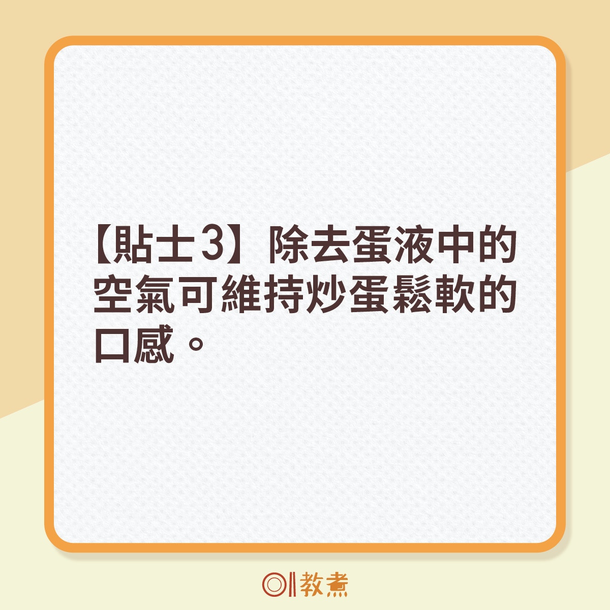 不喜歡日式或港式炒蛋,還可以參考廚神Jamie Oliver示範英、美、法式炒蛋,通通都用同等分量的雞蛋、鹽與牛油,卻變化出不同質地、外觀和味道的炒蛋。