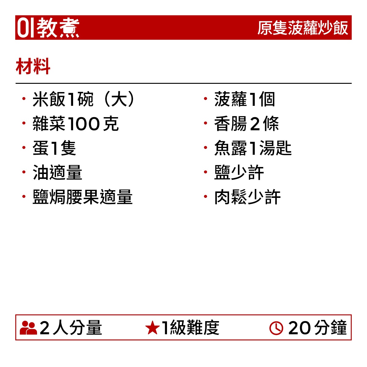 原隻菠蘿炒飯食譜