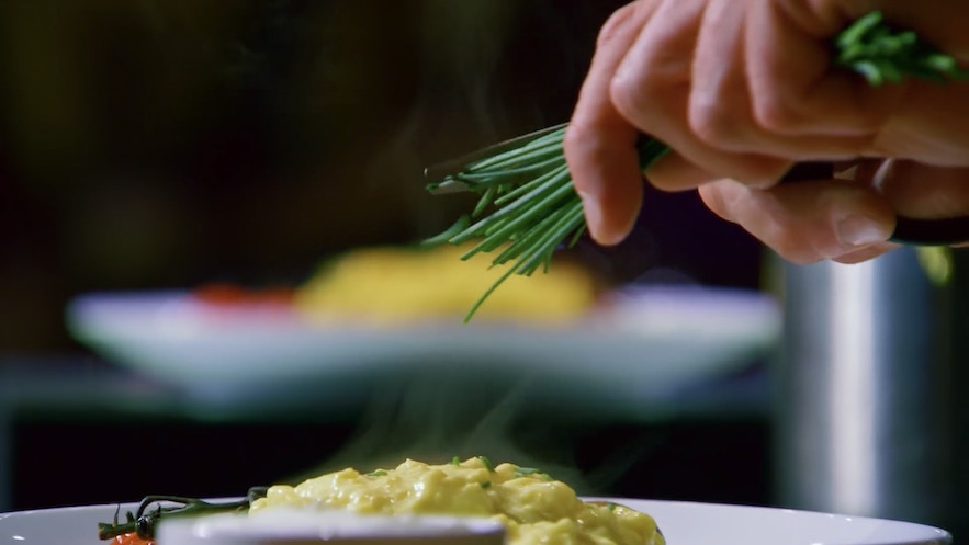 炒蛋可上碟,看起來空氣感很重、質地濕潤,亦不會太老太乾。(影片截圖:MasterChef On FOX)